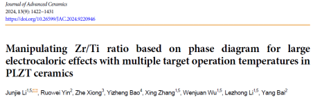 近日,william威廉中文官网电介质材料与元器件团队连续在《Journal of Advanced Ceramics》(中科院一区,影响因子18.6)、《Applied Physics Letters》(中科院二区,影响因子3.5)等国际知名期刊发表多篇关于铁电固态制冷技术(电卡效应)的研究论文。李俊杰博士为第一作者,我校为第一署名单位,合作单位包括北京科技大学、中国科学院上海硅酸盐研究所、苏州实验室等。研究成果得到国家自然科学基金、四川省科技计划、信息材料及器件化应用四川省高校重点实验室开放课题等项目的支持。